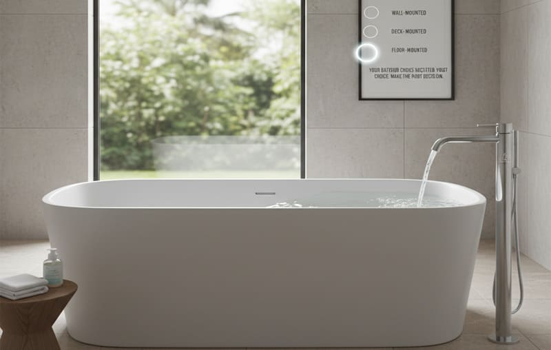- How to match the perfect faucet type—floor-mounted, wall-mounted, or deck-mounted—to your tub.
