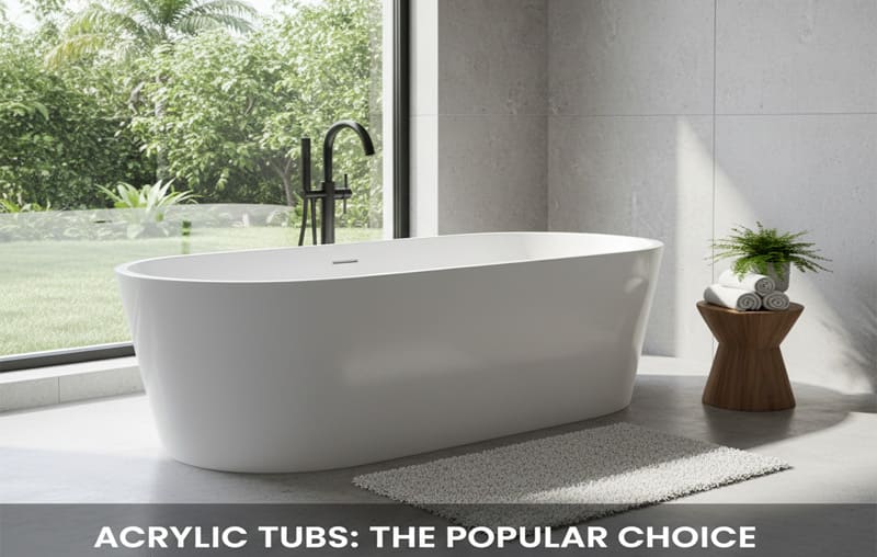 Acrylic tubs are made from vacuum-formed sheets of acrylic, reinforced with fiberglass. They are the most popular choice on the market for a reason.