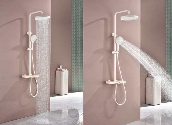 Once you’ve sorted your tub faucet, it’s time to consider the shower. The main choice here is between a system where the plumbing is visible (exposed) or hidden (concealed).