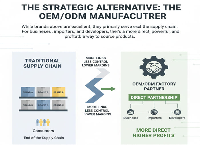 While the brands above are excellent, they primarily serve the end of the supply chain. For businesses, importers, and developers, there’s a more direct, powerful, and profitable way to source products: partnering with an OEM/ODM factory.