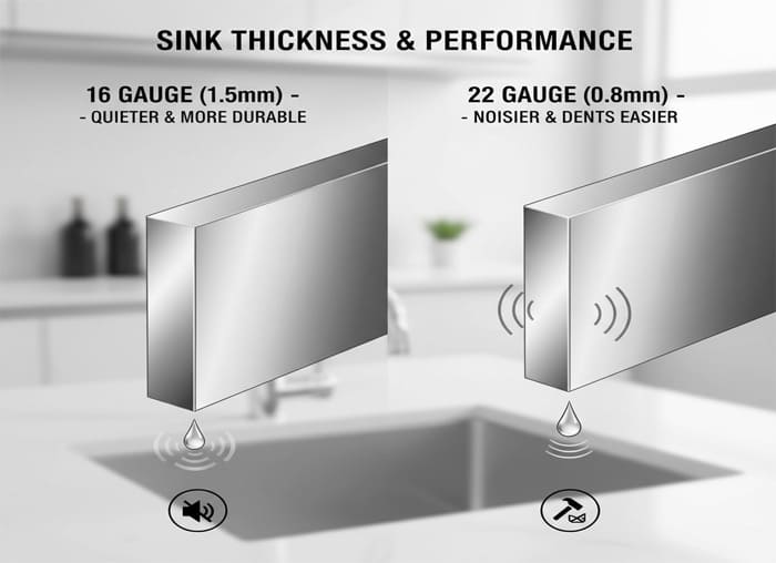 A common complaint with low-quality sinks is the loud, drumming noise they make. Thicker steel has more mass, which naturally dampens vibrations.